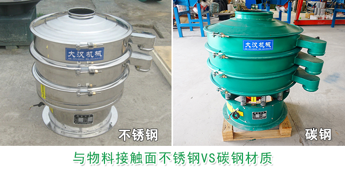 不銹鋼材質(zhì)具有良好的耐腐蝕性能和防不銹性,外表相對(duì)美觀且不必經(jīng)過(guò)鍍色等表面處理,適合大部分篩分物料接觸面要求較高的物料。