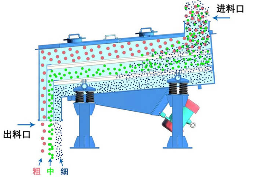 直線振動篩:結(jié)構(gòu)以篩箱為主體,內(nèi)置單層或多層篩網(wǎng)。其核心動力來自兩臺同步反向旋轉(zhuǎn)的振動電機(jī),產(chǎn)生直線激振力。設(shè)備通過減振彈簧支撐于底座,以隔離振動。結(jié)構(gòu)堅(jiān)固,適合大產(chǎn)量連續(xù)作業(yè)。