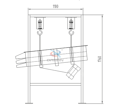 吊掛式直線振動篩分機為雙振動電機驅(qū)動。當(dāng)兩臺振動電機做同步、反向旋轉(zhuǎn)時,其偏心塊所產(chǎn)生的激振力在平行于電機軸線的方向相互抵消,在垂直于電機軸的方向疊為一合力,因此篩機的運動軌跡為一直線。兩電機軸相對篩面在垂直方向有一傾角,在激振力和物料自重力的合力作用下,物料在篩面上被拋起跳躍或向前作直線運動,從而達到對物料進行篩選和分級的目的。