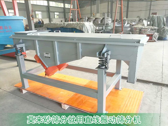 大漢機(jī)械生產(chǎn)的直線振動(dòng)篩分機(jī)利用振動(dòng)電機(jī)作為激振源,使莫來(lái)砂在篩網(wǎng)上被拋起,同時(shí)向前做直線運(yùn)動(dòng),莫來(lái)砂在給料機(jī)上均勻地進(jìn)入篩分機(jī)的進(jìn)料口,通過(guò)多層的篩網(wǎng)產(chǎn)生數(shù)種規(guī)格的莫來(lái)砂,分別從各自的出口排出。以達(dá)到篩分目的。
