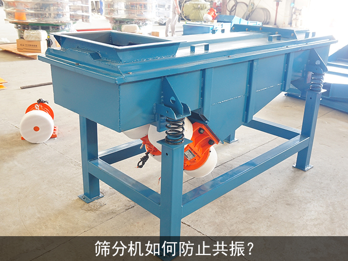 篩分機的振動電動需要安裝在很重的底盤上,可使篩機本身固有頻率增加,以增大與振動電機的振動頻率差距防止產生共振。