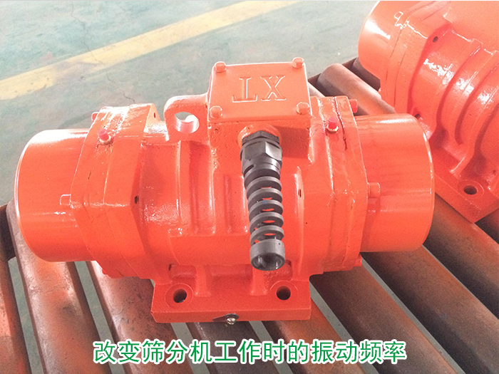 可改變篩分機工作時的振動頻率與其自身固有的振動頻率為不一致的頻率,可通過振動電機改變篩分機的振動頻率從而達到防止共振的目的。(可調節(jié)電機兩端的偏心塊夾角來改動激振力的大小,夾角小,激振力變大,振幅變大;反之,夾角變大,激振力變小,振幅變小)。