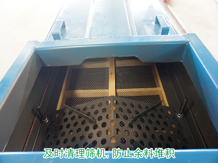 在篩分機使用過程中需要勻速進料不能使設備過載篩分,篩機內部也需要時常清理,防止余料堆積,如果過載篩分也會影響篩機的振動頻率,導致共振的發(fā)生。