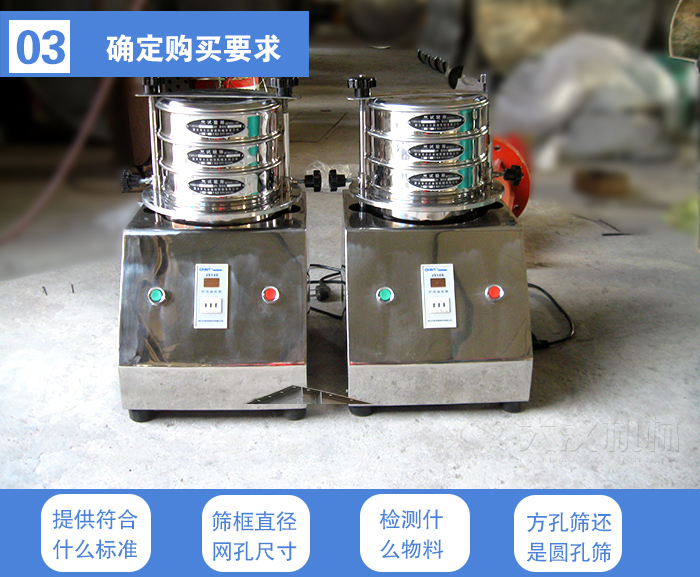 工廠內(nèi)部檢測:一般的物料檢測使用試驗(yàn)分樣篩就可以,標(biāo)準(zhǔn)試驗(yàn)篩和試驗(yàn)分樣篩的主要區(qū)別就在于網(wǎng)孔是不是符合標(biāo)準(zhǔn)。試驗(yàn)分樣篩的價格少比標(biāo)準(zhǔn)試驗(yàn)篩便宜一點(diǎn)。